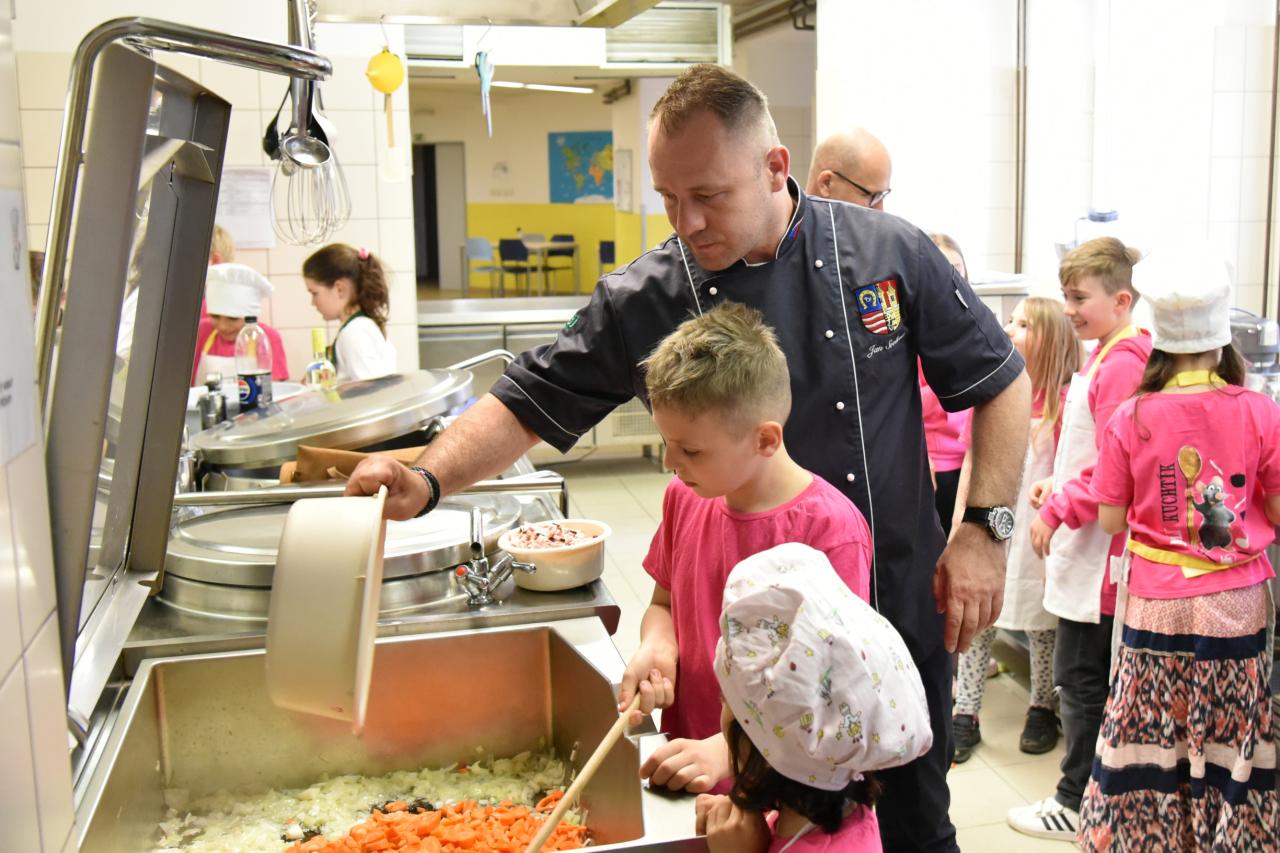 Zdeněk Pohlreich na kroužku Malých kuchtíků - foto Jan Jech